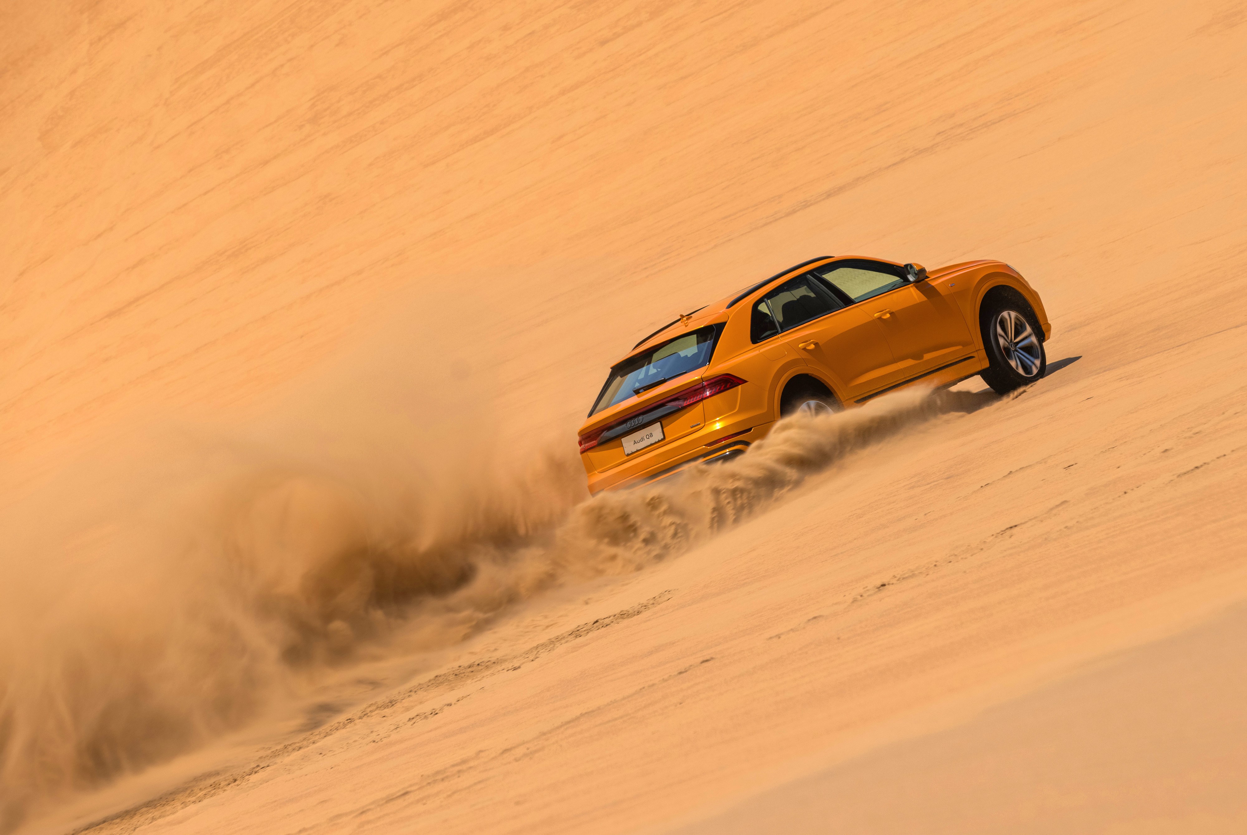 就比如在穿越無盡沙漠之中,2023款奧迪Q8給筆者留下深刻印象。車圈常說“盡管踩油門,剩下交給quattro”,深入沙漠腹地,2023款奧迪Q8標配的quattro全時四驅(qū)系統(tǒng)便派上用場了,純機械中央差速器以40:60比例將動力傳送至前后軸,極限條件下可達到30:70,甚至15:85,另外,由于2023款奧迪Q8采用全鋁車身最大程度降低車重,我們在進入沙漠試駕之前甚至沒有放低胎壓,在這樣的條件下,全程使用越野模式,輕松完成穿越。