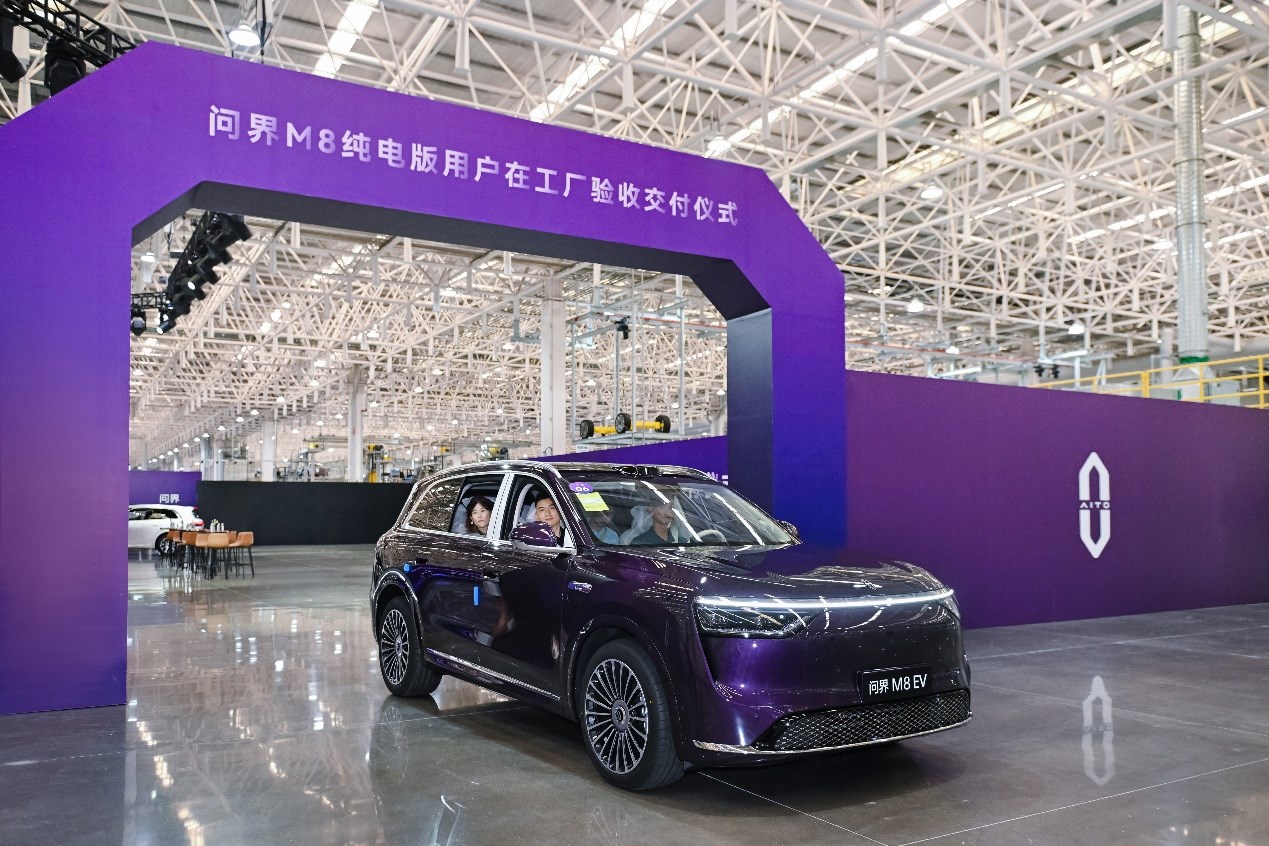 9月8日,問界M8純電版用戶在工廠驗(yàn)收交付儀式于重慶賽力斯超級(jí)工廠圓滿舉辦。來自全國各地的多組問界M8純電版用戶一同參觀了賽力斯超級(jí)工廠,并親自參與自己車輛的工廠終檢驗(yàn)收,賽力斯集團(tuán)董事長(創(chuàng)始人)張興海向用戶交付新車鑰匙,將用戶“認(rèn)可才提車”模式持續(xù)常態(tài)化,實(shí)現(xiàn)高品質(zhì)、高質(zhì)量交付。