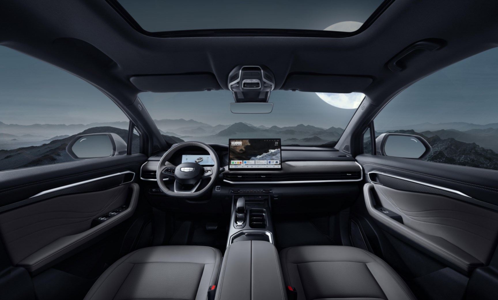 新車(chē)尾部造型方正,使用了貫穿式的尾燈,下方則刻印著吉利汽車(chē)的英文字母,進(jìn)一步加強(qiáng)辨識(shí)度,底部雙邊共兩出的排氣布局還加上了濃郁的鍍鉻裝飾,進(jìn)一步加強(qiáng)時(shí)尚氣息。